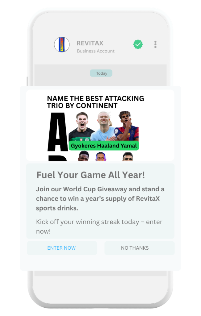 During major tournaments, football stays top of mind for your customers. Brands that deliver timely, relevant messages across the right channels – especially WhatsApp platforms – can strengthen relationships and drive engagement.